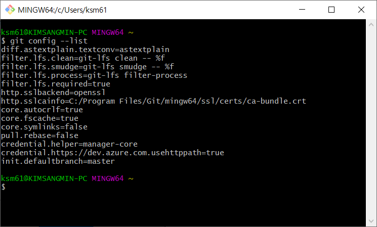 다시 git config --list 명령어를 통해 설정이 된 것을 확인한다.