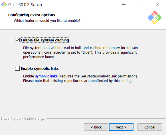 Enable symbolic links : symbolic links 활성화합니다.(기존 저장소는 영향을 받지 않습니다)