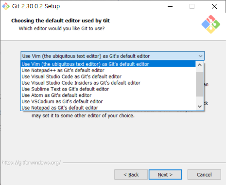 VScode와 같은 주로 사용하는 에디터가 있다면 해당 에디터로 설정한다. (나는 Vim을 선택했다.)