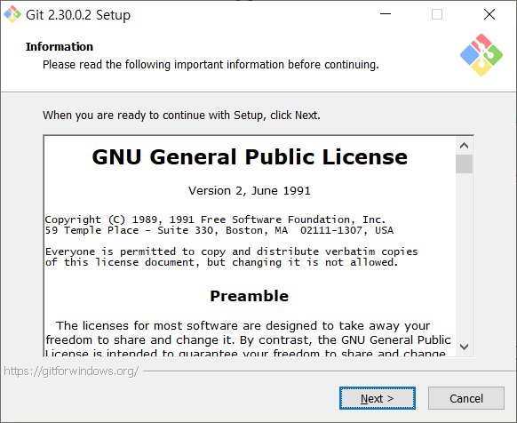 Windows에서 Git을 사용하기 위한 GitBash를 설치한다. (2.30 버전)