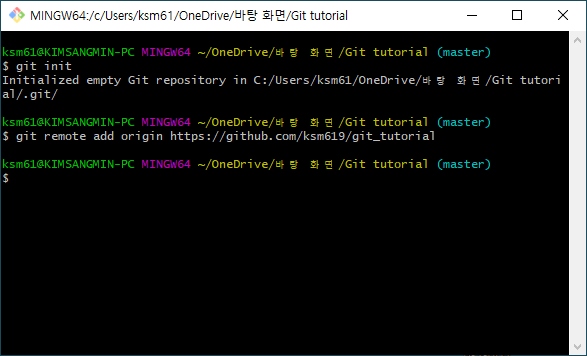 다음 명령을 통해 폴더 안에 git을 생성하고 github와 폴더를 remote한다.