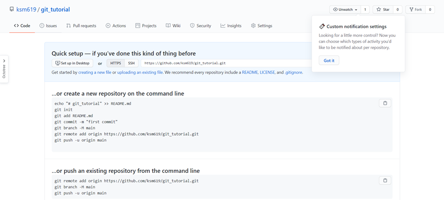 push가 끝났으면 Github에 올라와 있는지 확인한다.