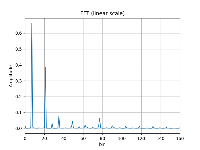 이와 같이 numpy의 fft 내장함수를 이용하여 fft의 결과를 log와 linear로 그릴 수 있다.