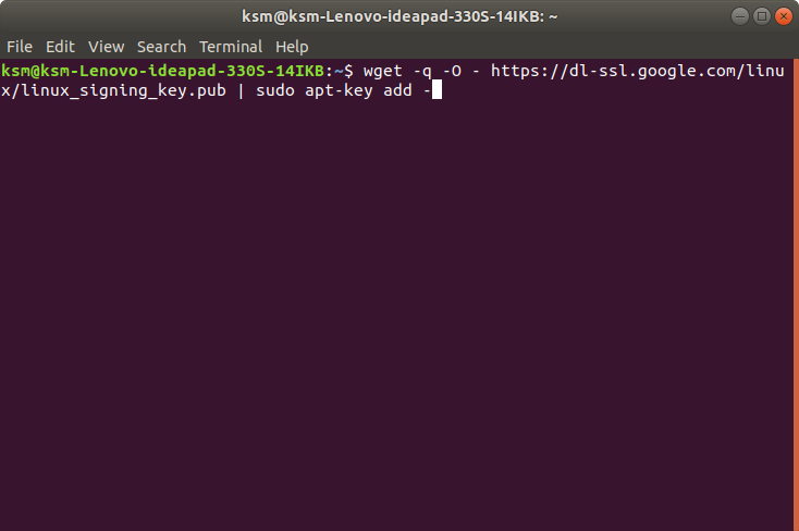 wget -q -O - https://dl-ssl.google.com/linux/linux_signing_key.pub | sudo apt-key add -