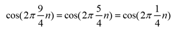 주파수가 9/4인것처럼 보인다. 하지만 1, 2, 3 4.. 를 더하거나 빼도 같은 주파수이게 된다.