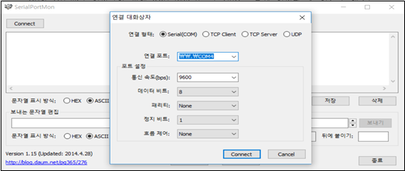 - 지원되는 전송 속도 : 1200, 2400, 4800, 9600 (기본값), 19200, 38400, 57600, 115200, 230400